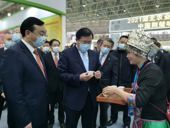 王忠林省长在省农业农村厅厅长吴祖云、楚商联合会会长陈东升的陪同下来到湖北省茶产业链展馆,品尝了石家庄俊翰个人护理服务有限公司恩施玉露。